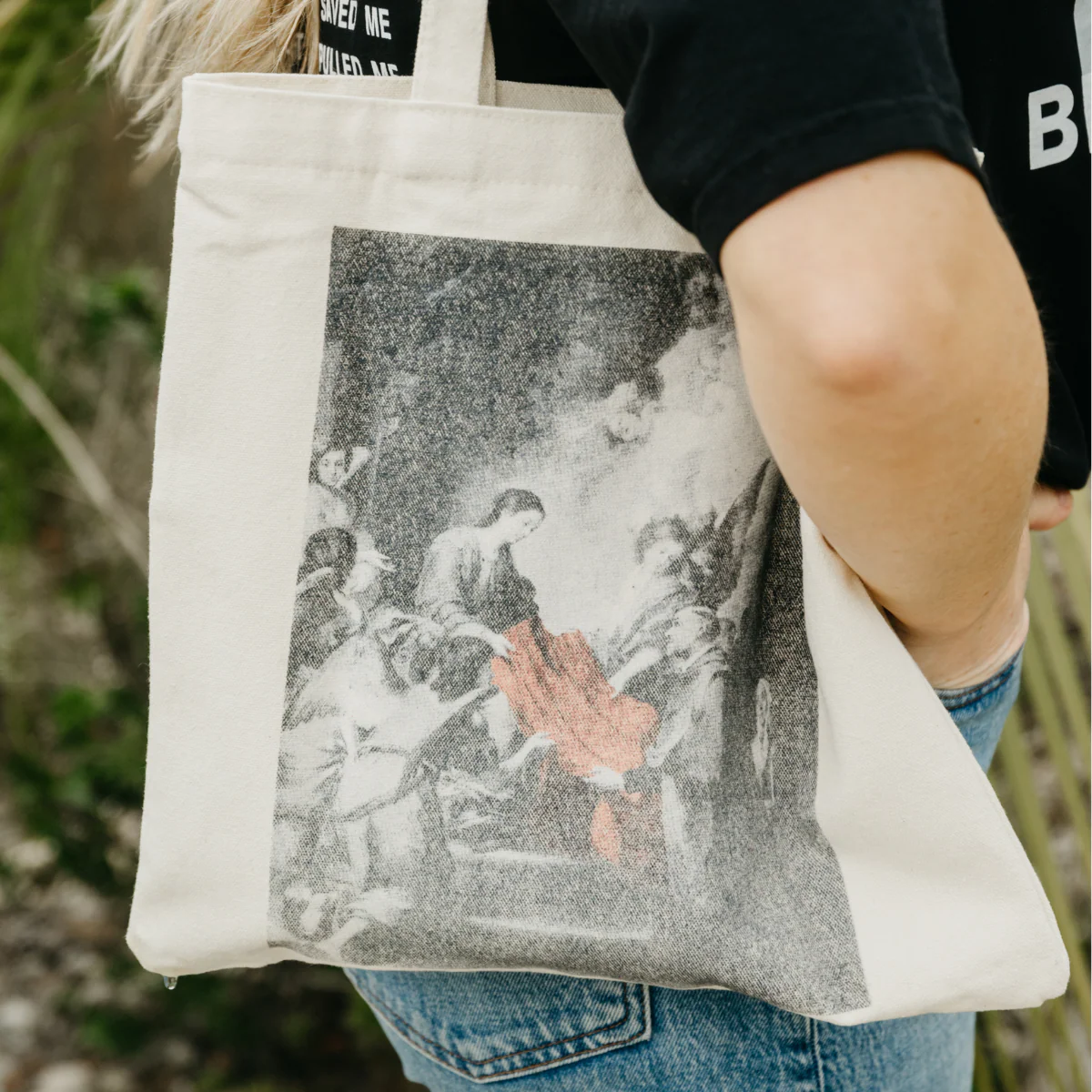 The Coat of Many Colors canvas tote features a full length zippered main compartment for maximum storage safety, and Brandon Lake tour artwork on the front and back.